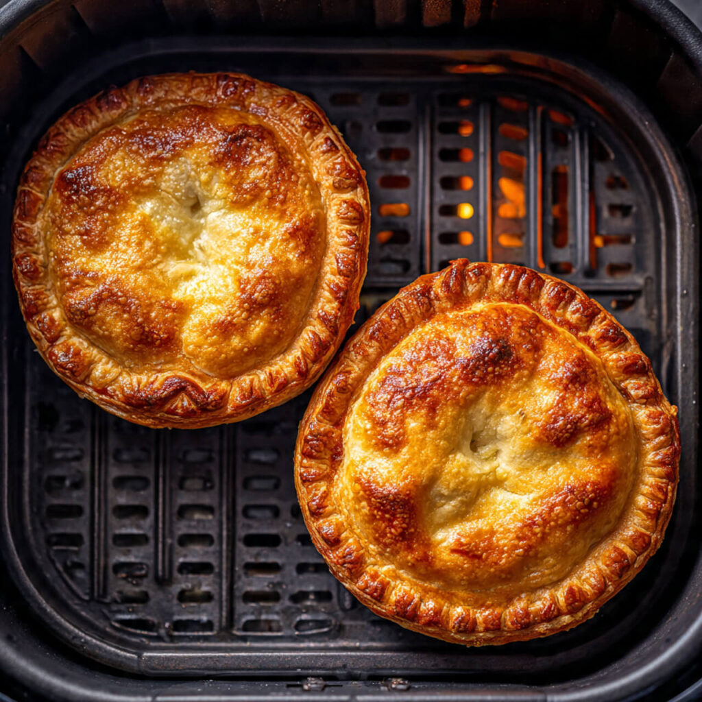 FYI: family-size pot pies don’t work great unless your air fryer is huge. Individual pies cook more evenly.