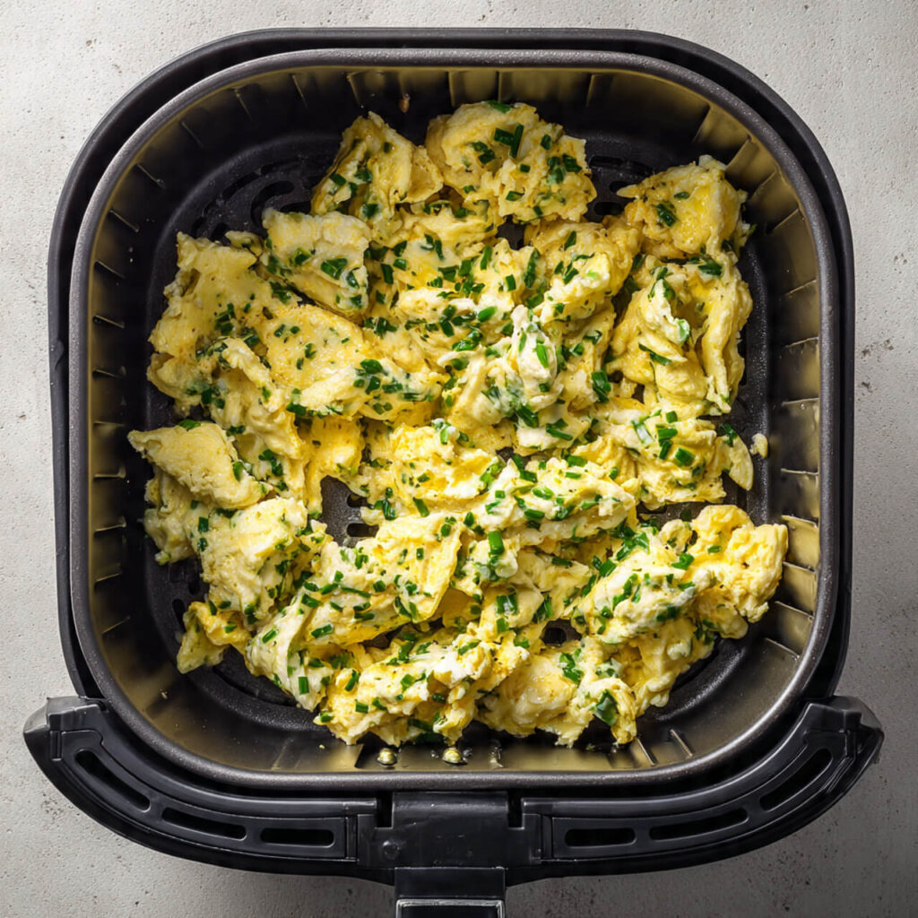 Pre-air-fry diced peppers, onions, or mushrooms for 3–4 minutes before adding eggs.