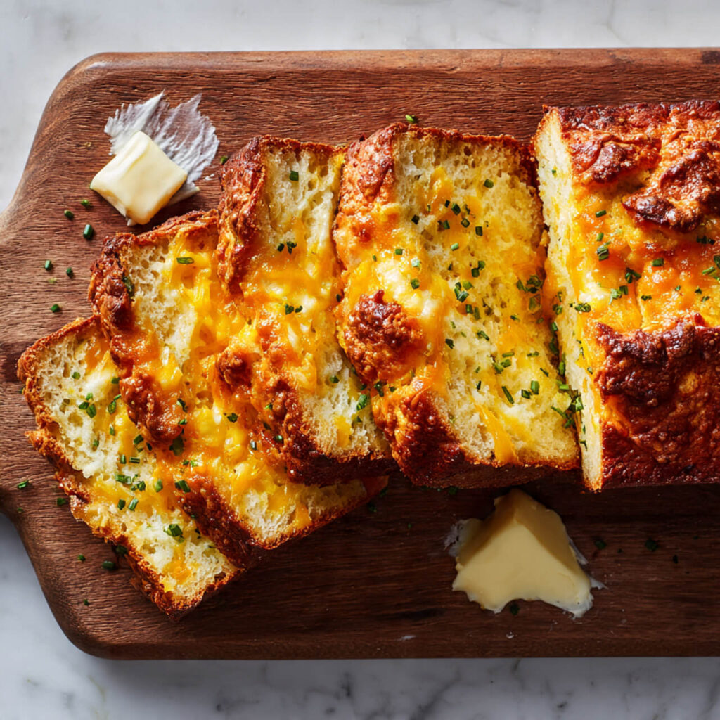 I baked this loaf on a rainy afternoon years ago when I needed something warm, savory, and low-effort. No mixer. No yeast panic. Just one bowl, a loaf pan, and a ridiculous amount of sharp cheddar. When I pulled it out of the oven, the house smelled like a bakery that specializes in comfort. I sliced it too soon (zero regrets), slathered it with butter, and honestly… I’ve been chasing that feeling ever since.