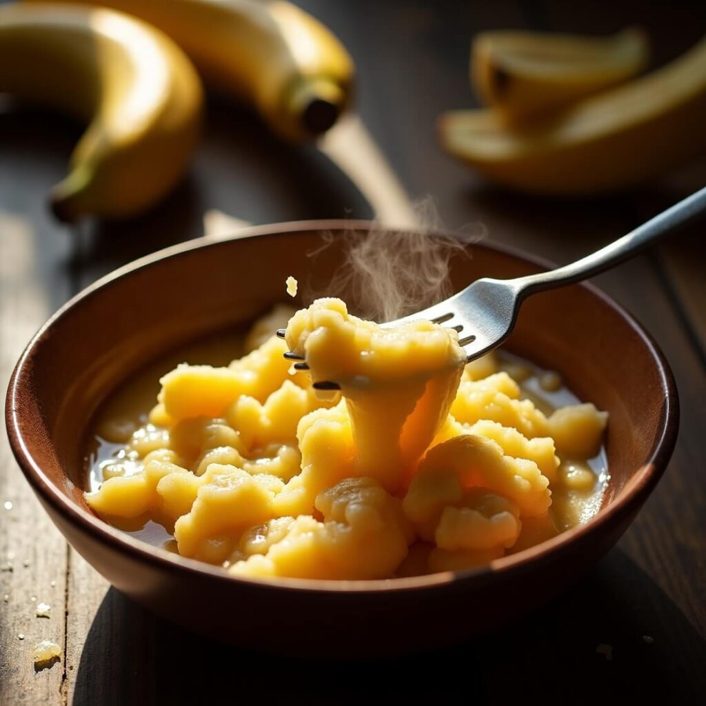 2.Mash bananas—I still use a dinner fork and leave some chunks for texture. If bananas aren’t ripe, bake them at 300°F for 15 minutes. Sometimes, I even microwave them for 30 seconds in a pinch (don’t judge).