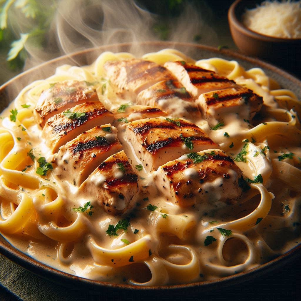 You’ve seen it on menus: pasta tossed in white sauce, maybe with a slice of chicken on top.