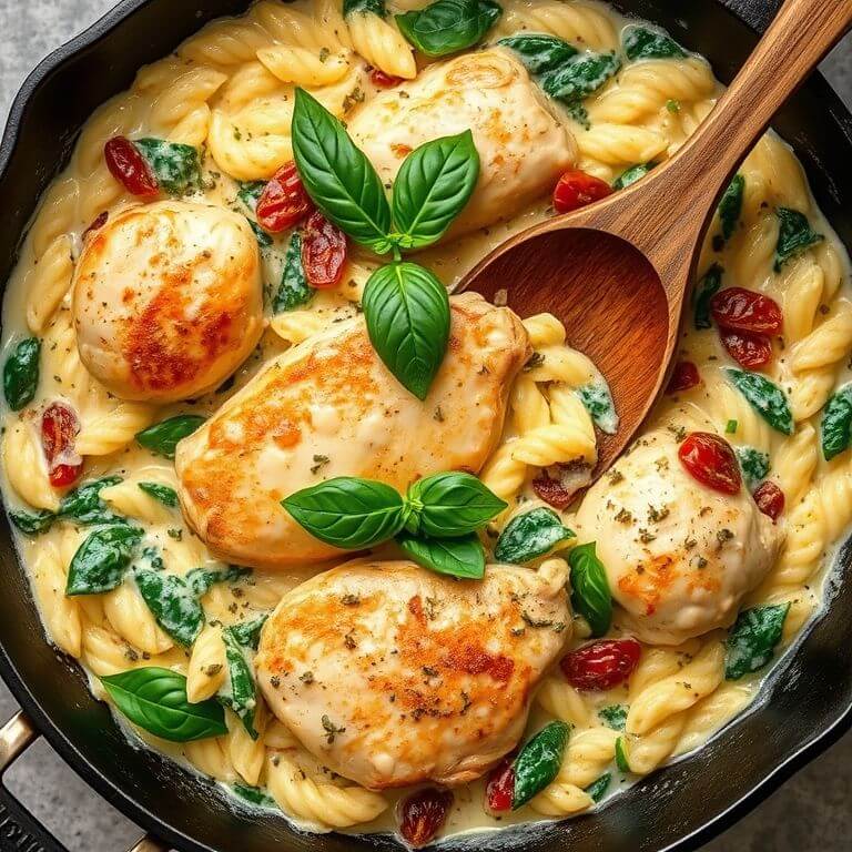 Honestly, I stumbled upon this dish when I was hunting for something cozy but not boring. You know those recipes that sound fancy but are kinda a headache to pull off? This is NOT one of them. It feels indulgent and restaurant-y with its creamy, garlicky sauce and all those sun-dried tomatoes and spinach, but it’s actually super chill to make.