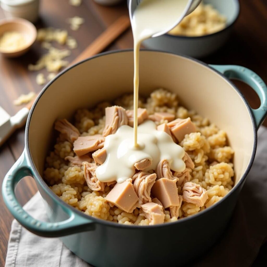 Step 4: Add Chicken & Cream—Almost There!