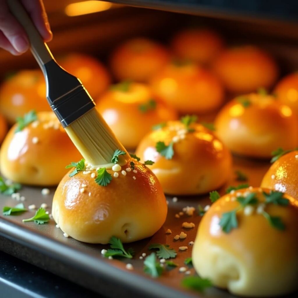 Mix melted butter, garlic powder, and parmesan cheese. Brush the bombs generously and bake at 375°F (190°C) for 15–20 minutes, til golden and glorious. Fresh parsley on top = chef’s kiss.