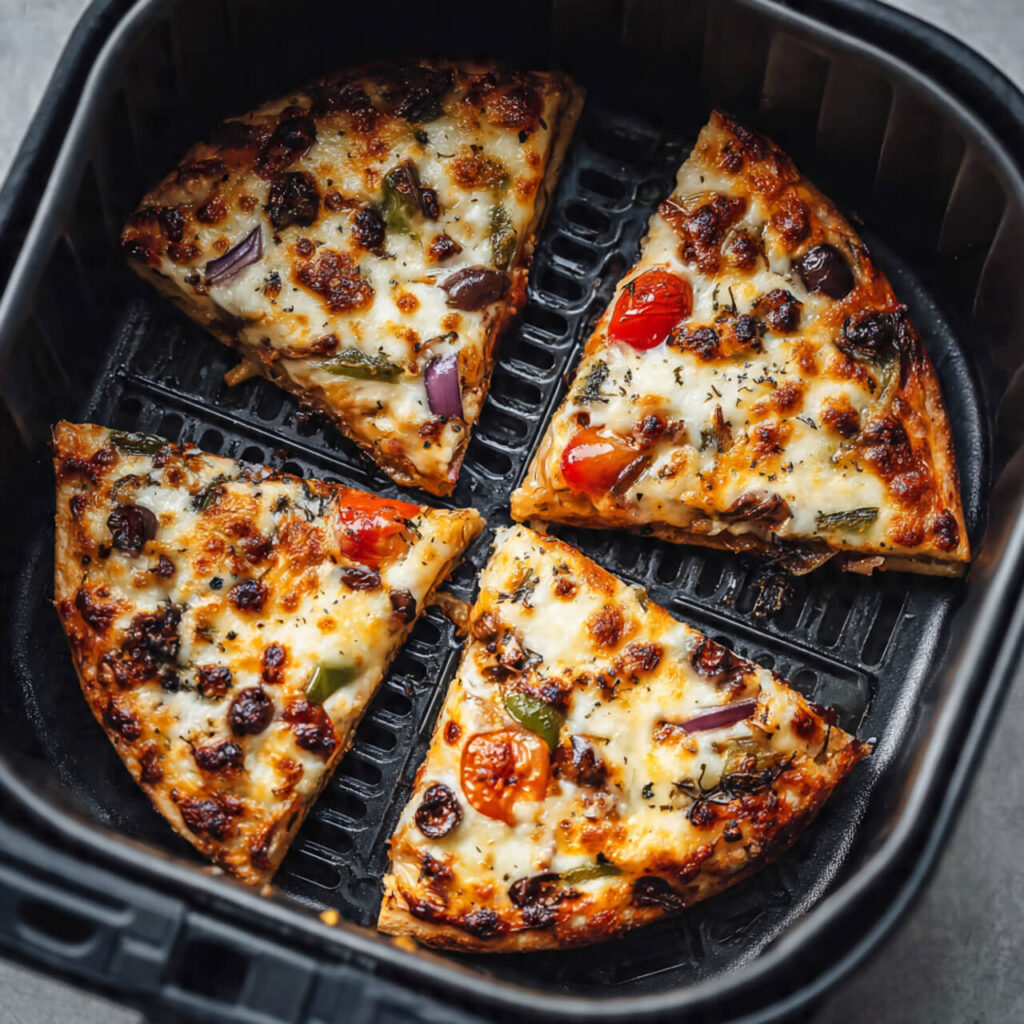 The one I personally use is the Cosori 5.8-Quart Air Fryer. It fits 1–2 large slices without folding, and the heat stays consistent.