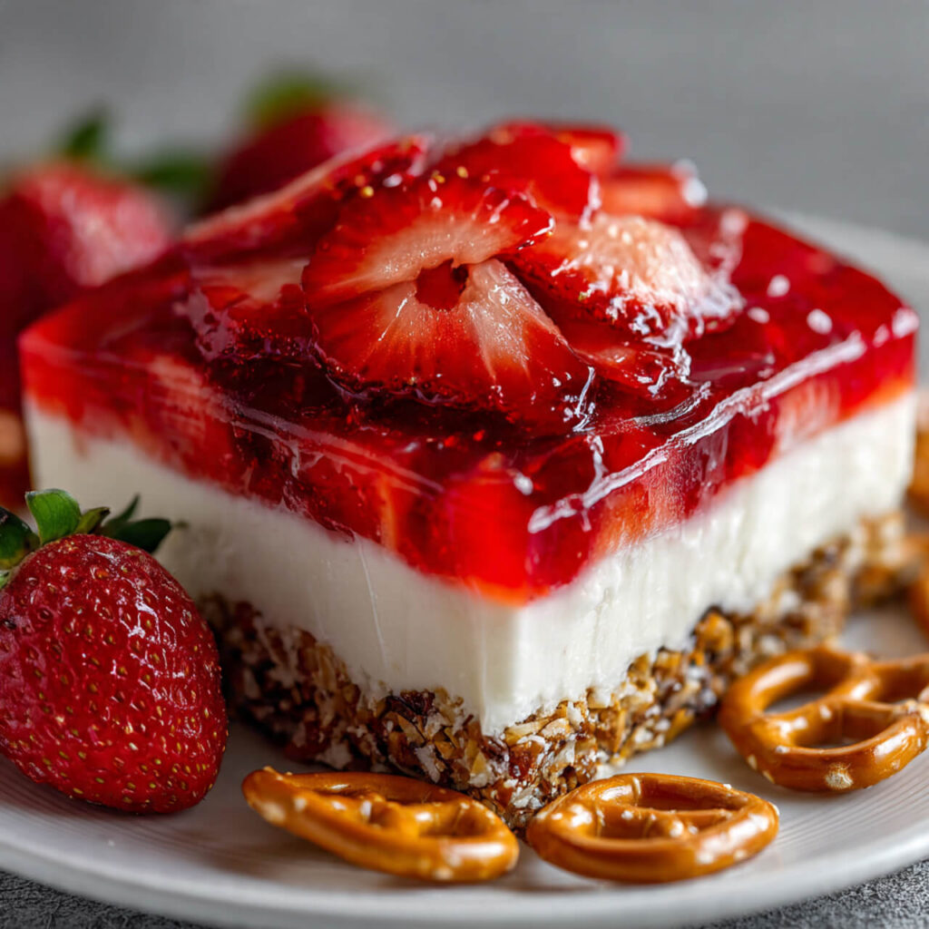 Ever wonder why this recipe sticks around decade after decade? Contrast. That salty pretzel crust plus creamy filling plus fruity topping hits every craving at once.
