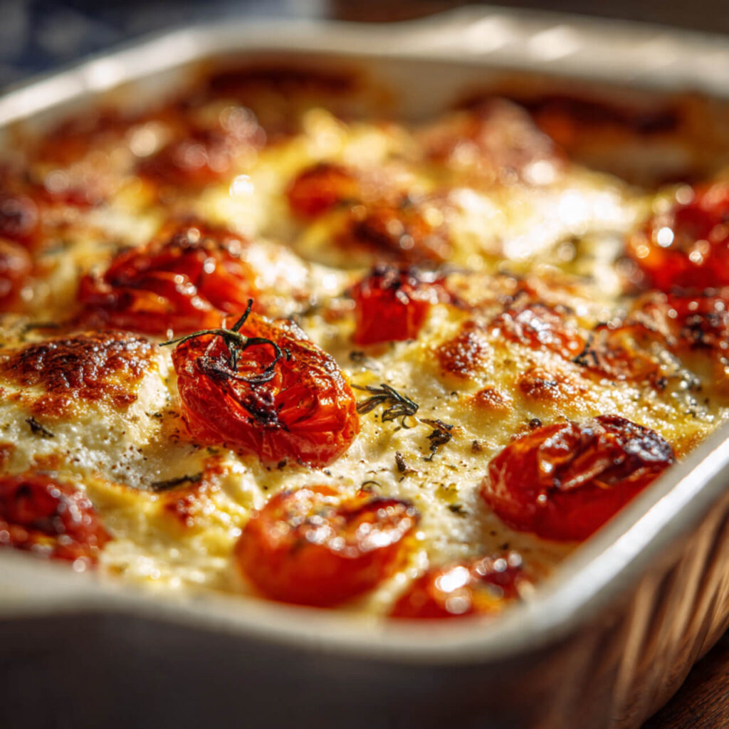 - Bake 35–40 minutes until tomatoes burst and feta softens.