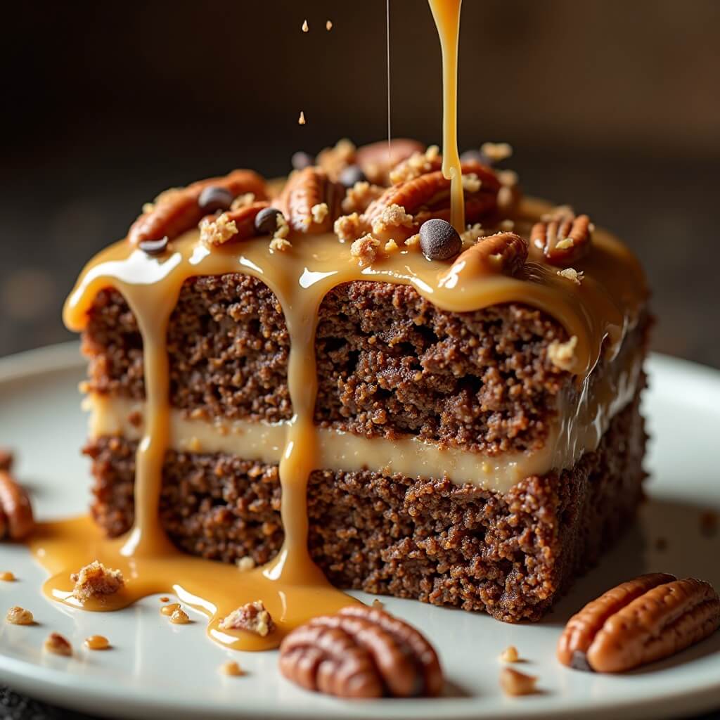 Ever wondered what heaven tastes like? Imagine rich chocolate cake soaked with caramel sauce, layered with toasted pecans and topped with a glossy chocolate finish. This isn’t your average cake, folks. It channels the classic “Turtle Candy” combo — yes, caramel, chocolate, and pecans — into a multi-layered dessert experience that’s both nostalgic and divine.